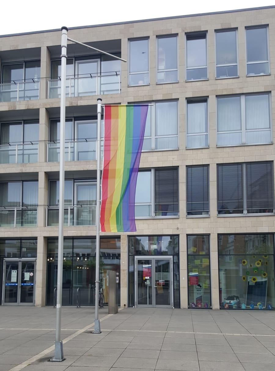 Regenbogenfahne weht vor Stadthaus